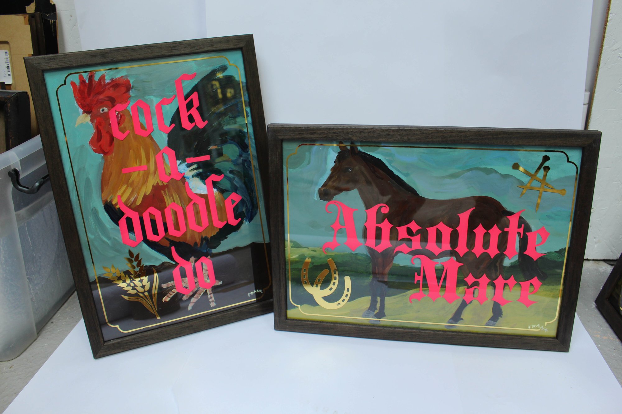 23ct gold leaf, glass, enamel paint and oil pastel illustrations by Frankie Thorp.