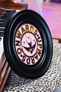 The 'ONWARDS / UPWARDS' signs come in 3 sizes, they are painted in reverse on to glass and use 23ct gold leaf